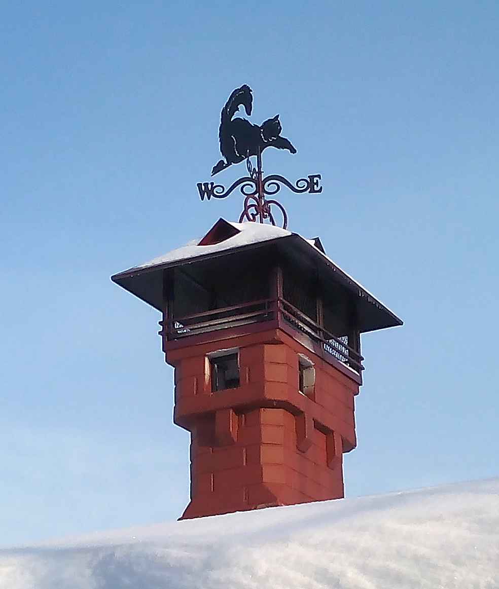 Вот мой дымник , а-ля вальмовая крыша . С двух сторон отверстия под этими вот козырьками , как раз по приведеным Виктором причинам . По бокам вкладные съемные сетки , привязанные к пруткам ограждения проволокой - птички , знаете ли греются, угорают и валятся внутрь . У меня оголовок- отлитая плита , с залитыми анкерными болтами , дымник к ним гайками привернут, не улетит , и относительно легко снимется для прочистки трубы .
