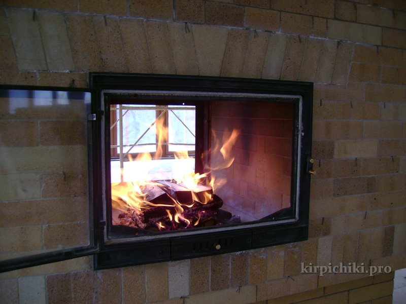 Один такой камин, со стеклянной задней дверкой, я видел. Не сам камин, а только дверку, которая выходит на наружную стену дома и открывается наружу. Через стекло видно нутро обычного открытого камина, а сама суть стеклянной дверки на задней стенки проста и очевидна: камин топится истопником снаружи. Что происходит в момент открытия дверки - загадка, но, я думаю, как-то это работает, изба достаточно серъёзная, вряд ли там прошла бы халтура.