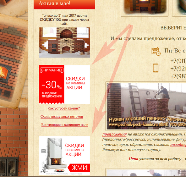для сравнения ПРАВИЛЬНЫЙ сайт (2007 года) https://fireplace.su/ такие рисунки слева под меню.
