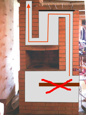 А это нормально будет, что у печки дымоход прямо над дверцей топочной получается, если лист железа убрать? Я на схеме нарисовал.