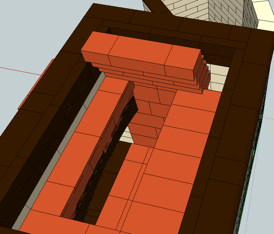 Конечно я понимаю, что при проектировке комплекса, ввиду осутствия спец.знаний и опыта допустил ошибки, которые теперь доставляют проблемы и тормозят работу. Когда делал 3D модель хотел, чтобы стенки мангала были симитричными в кирпич и добавлдять дыможоды с бокову, пусть с небольшим выступом в пол кирпича не захотел. О чем теперь жалею.