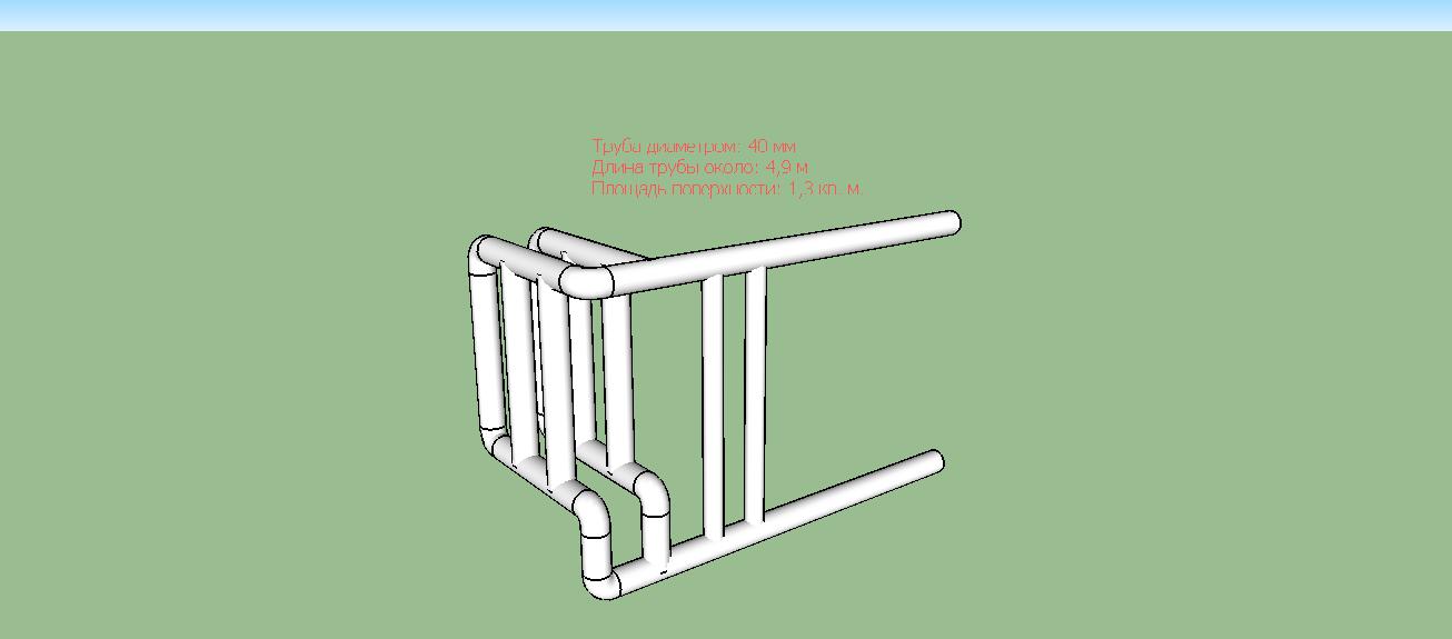 По моим подсчётам, при длине 40 трубы 4,9м, площадь такого регистра получилась около 0,6м2, что можно считать подходящим, но только для закрытой системы, т.к. без давления воду не удержать от закипания, и с правильной обвязкой котла, т.е. с термостатическим трех-ходовым клапаном, ну и небольшой буфер не помешал бы. В качестве буфера хорошо подходит бойлер косвенного нагрева горячего водоснабжения, литров от 100-150...