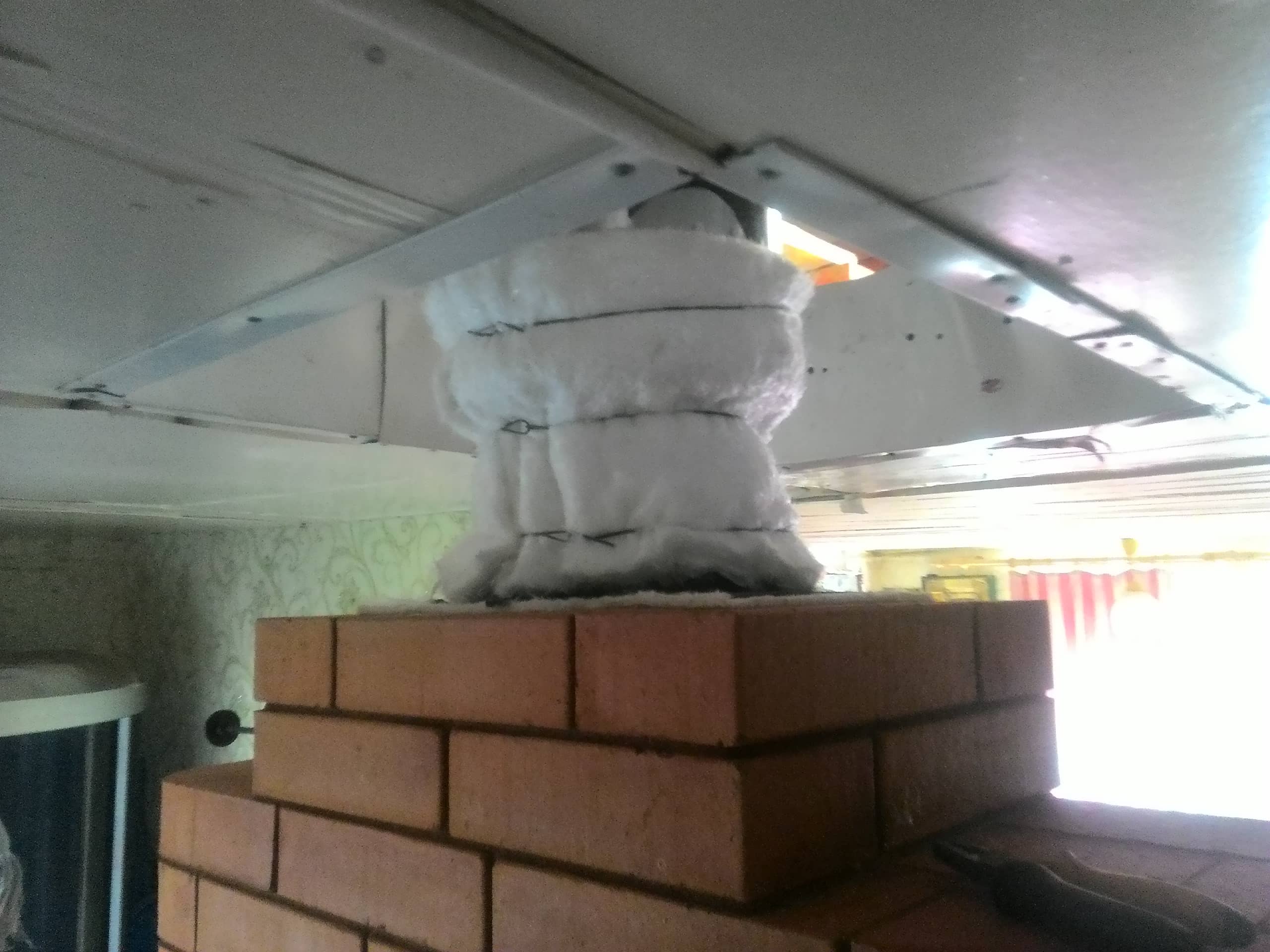 По сути кирпич самый худший из возможных материалов для распушки из-за высокой теплопроводности. Материал распуши должен быть теплоизолятором, а не теплопроводником.