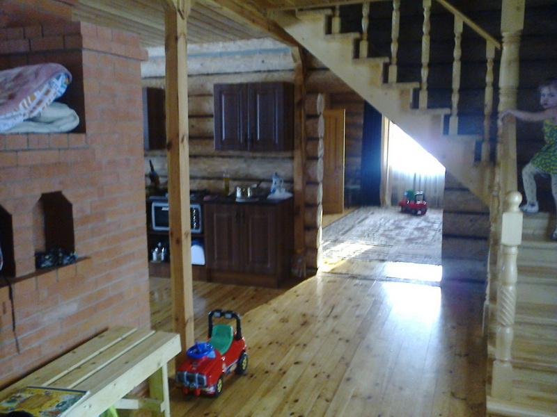 Дом, размеры которого можно примерно представить по фото, в два этажа, отапливается русской печью в одной половине и печью-котлом, построенной нами ранее, в другой. От котла водяная система отопления на естественной циркуляции по всему дому, трубы диаметром мм 50 и чугунные батареи под окнами.