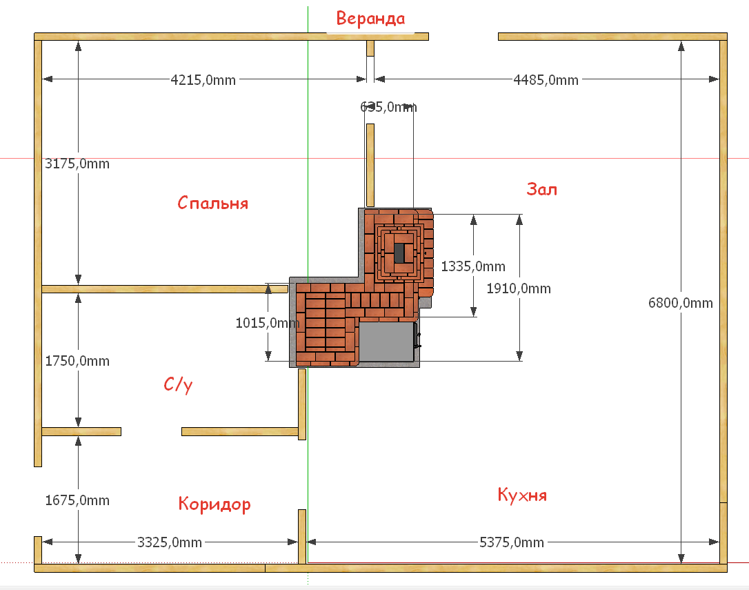 Собрались строить себе каркасный дом 6х9 (1 этаж), на бетонных столбах. Обогревать решили кирпичной печкой, что бы была хоть какая то термомасса в доме. Печь нужна между залом-кухней (25 кв.м.) и спальней (15 кв.м.). Длина смежной стены - 3 м.