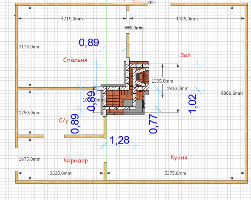 Собрались строить себе каркасный дом 6х9 (1 этаж), на бетонных столбах. Обогревать решили кирпичной печкой, что бы была хоть какая то термомасса в доме. Печь нужна между залом-кухней (25 кв.м.) и спальней (15 кв.м.). Длина смежной стены - 3 м. |