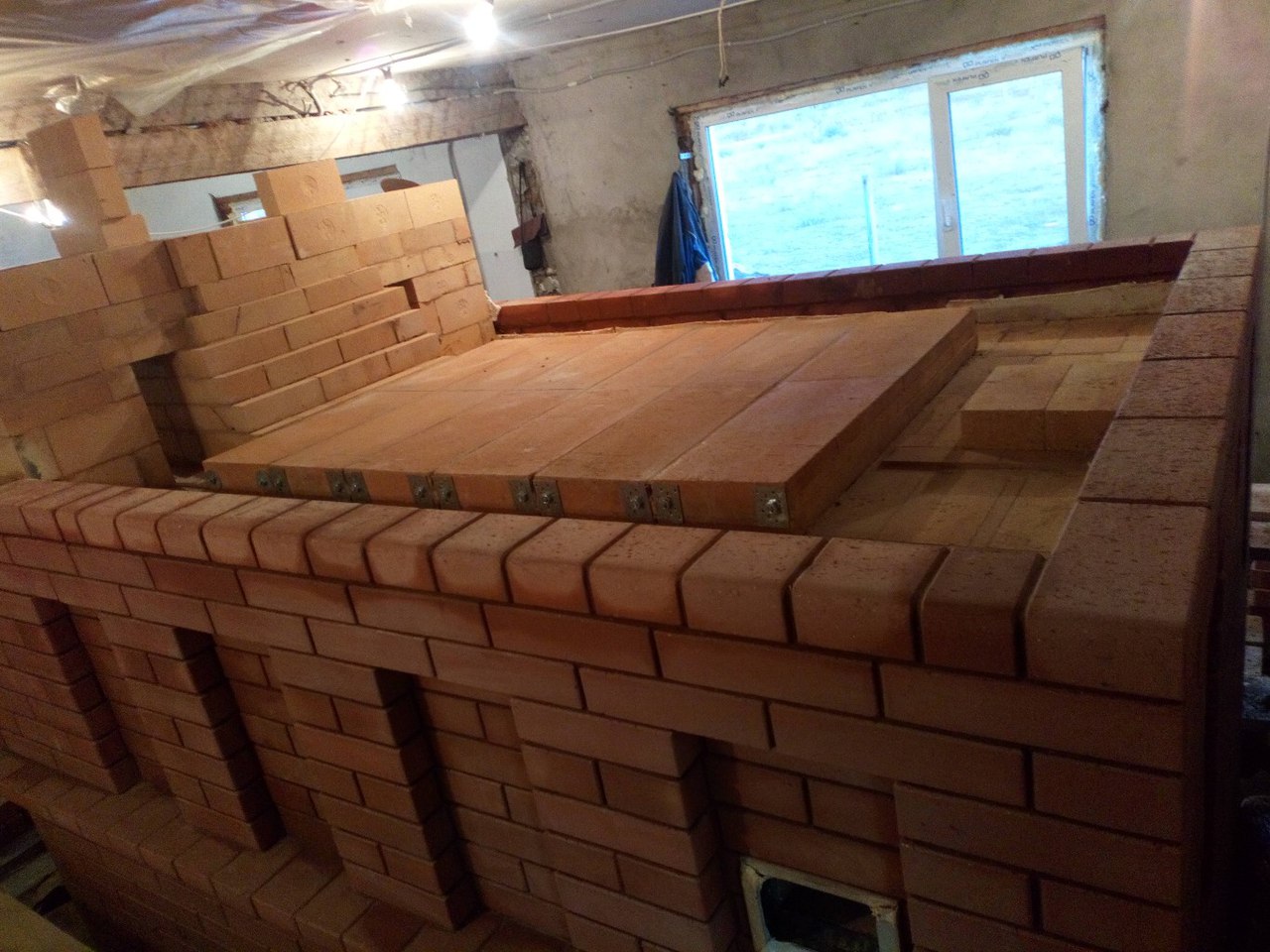 Сложный агрегат. Проект дорабатывался и перерабатывался "по ходу пьесы". На фото как раз тот самый гипокауст. От которого лежанка греется и держит стабильную температуру ночью в течении 10 часов 45 гр. Главная задача Русской Печи -это чтобы было комфортно спать на лежанке. Без "горячих пятен" на её теле. Как в моей первой теме сомнения высказывались по этому поводу. Да и конечно готовить еду. Без протопки горнила -температура там поднимается до 150гр. Можно спокойно поставить чугунок на ночь для томления продуктов. Для выпечки хлебов конечно надо будет протопить горнило. Иначе при 150гр хлебушек плохо пропечётся.Просто высушится тесто -а нужно чтобы ещё какие то биохимические реакции в тесте произошли. Чтобы дрожжевые и заквасочные бактерии погибли.