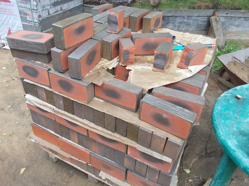 Продолжаю дальше рассказывать об этом уникальном кирпиче чем дальше в лес тем толще партизаны !!! Он мне чертовски нравиться завод улучшает качество правда до сих нет радиусных элементов приходится стыковать с ЛОДЕ и другими . Есть еще один очень важный момент при выборе его для строительства печи - камина или мангала это цвет его . Вот тут главная засада для печника или заказчика . А суть очень проста раньше завод выпускал больше коричневого цвета и немного красного оттенка и то почему то на тычках. Но потом видно и решил выпускать и красный в перелив в коричневый . Под пленкой на стройплощадки особо этого не видно надо уточнять по факту что грузят в машину., и перебирать каждый поддон до начало кладки иначе вся конструкция будет коричневой а верх красный или наоборот .