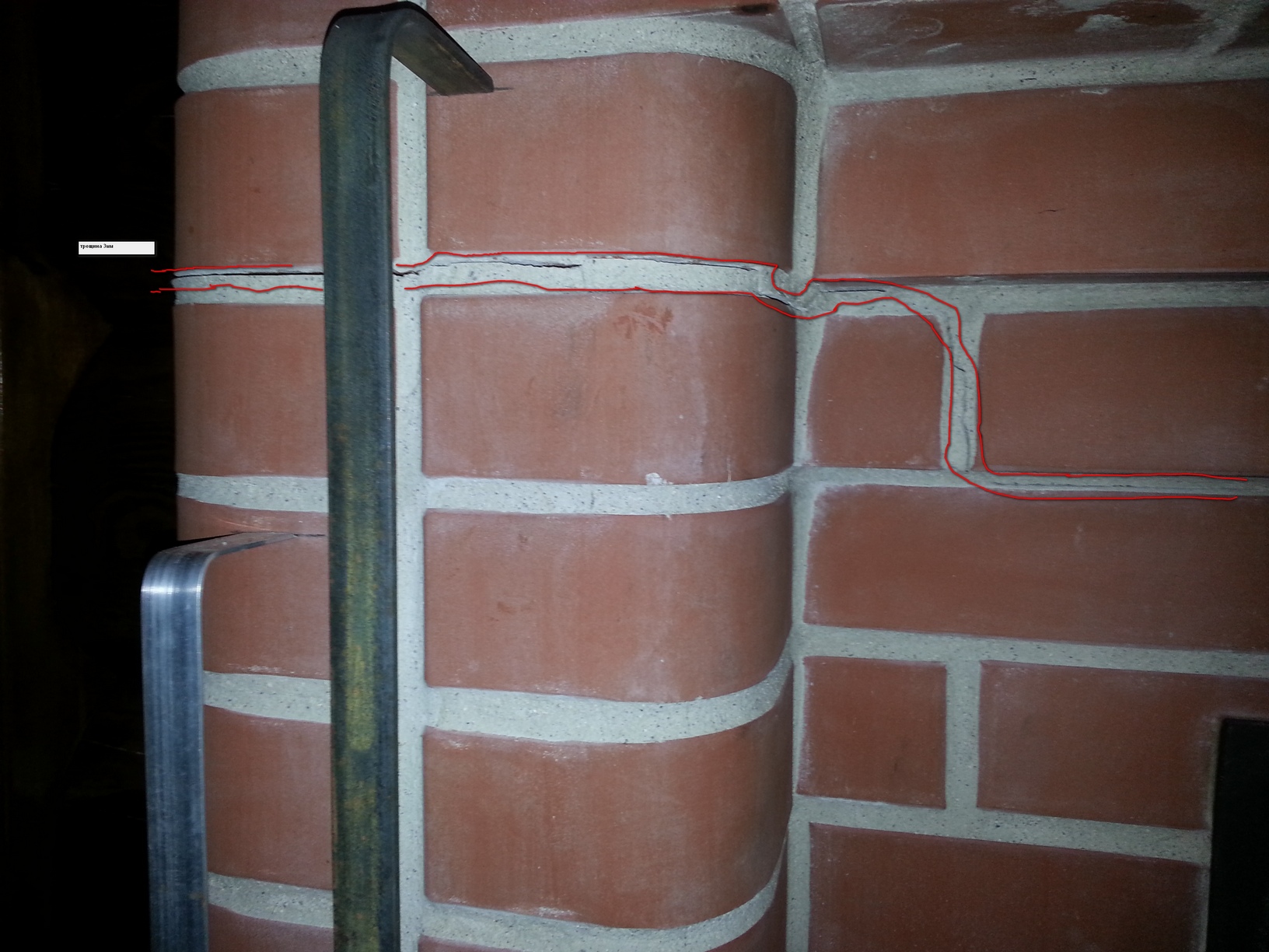 Сама система работает отлично. Левый угол реально поднимается, низ остается. Сделал репера, нижний репер на месте остался после разогрева, верхний сместился. Левый угол поднимает сильнее. Трещина на уровне плиты. Ощущение, что левый ряд кирпичей, который прилегает к основной стенке внутри топки,без зазора между верхом и перекрытием. Не знаю, не печник. Нужен там зазор был или нет и как исправлять? Что успел на Фото снять когда он клал, выложу.