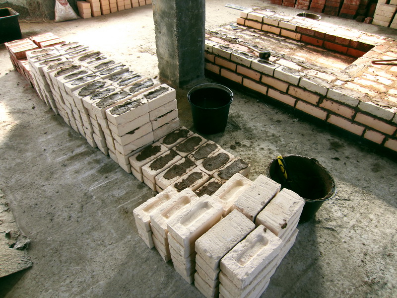 3) первый раз вижу, чтобы ручник так клали: мало того что большая часть кирпичей вверх лодочкой, так еще и "румпу" предварительно заполняешь. В чем смысл? Почему сразу не заполнять?