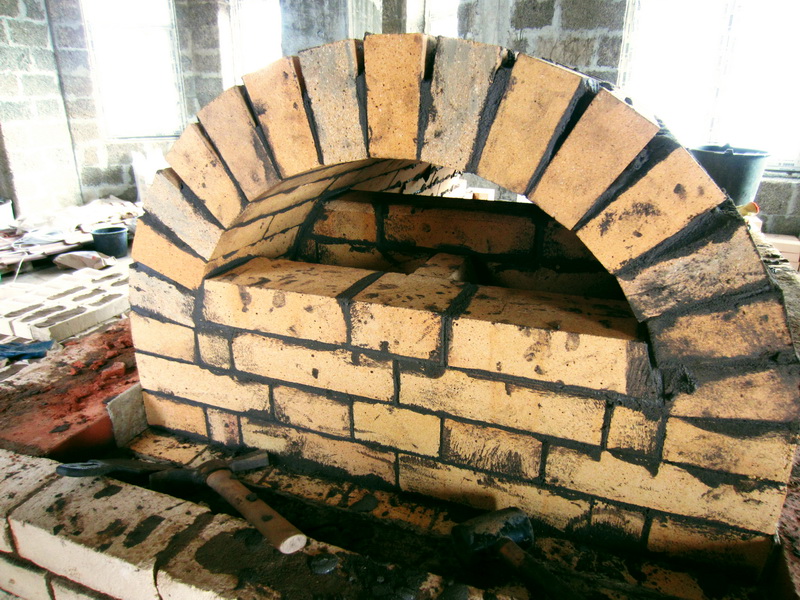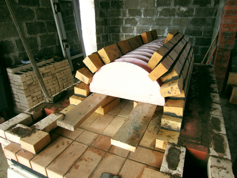 Да, швы в своде сильно клиновые. Это потому, что не удалось приобрести клиновых кирпичей №48, пришлось делать из одного 47-го. Но ничего, внутри свода швы всё равно тонкие, а снаружи хорошо утрамбованы.