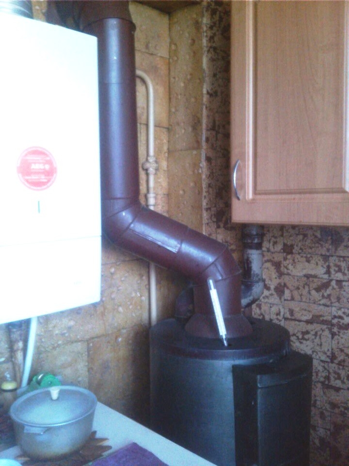 Здесь же представлены трубы, ориентированные также и на иные, порой абсолютно нетрадиционные ценности. Вот, например, труба газового котла АОГВ специально изогнута так, чтобы возникла иная ценность - возможность открытия дверки шкафчика. Эта ценность пересилила традиционную ценность, поскольку удовлетворила хозяйку, хотя и непозволительно снизила тягу трубы (которая должна иметь у котлов обязательный вертикальный стояк высотой хотя бы метр).