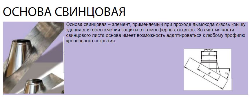 Почему именно такая основа? (Для не сложных (прямых форм кровельных материалов) можно взять основу из н/ж стали.) В большинстве случаев крыша имеет подвижность, снеговая нагрузка, перемена влажности и т.п. Основа крепиться к крыше, герметичность достигается креплением фартука к трубе, т.е. на каком-то расстоянии от основы. При опускании или поднимании крыши герметичность не нарушается. Металл не разрушается от воздействия солнечного света, влажности и т.п.