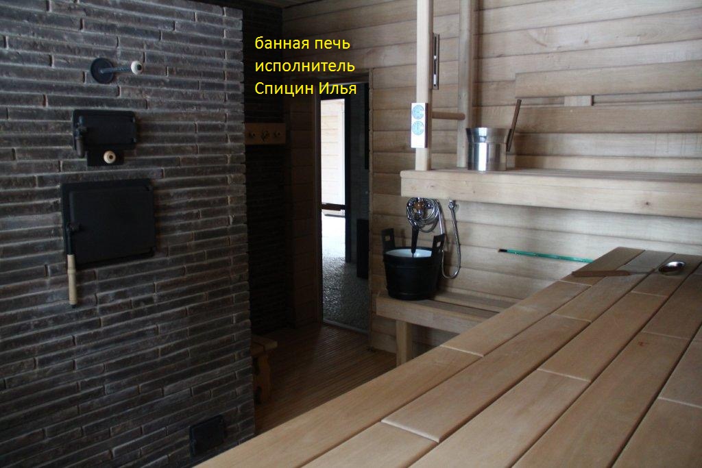 Парная 4х4м высотой 2,65 м. Печь из ригельного кирпича. Утеплена парная пробкой. Отделка доской термо ольха 40мм толщиной. В парной большое окно. Полок в этой бане уникальный. Он состоит из 3х ярусов.