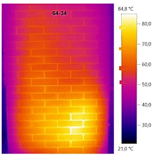 Анализ работы отопительного прибора будем проводить на термографическом снимке поверхности печи, данными температуры в помещение и основные расчеты из ГОСТ 3000-45.
