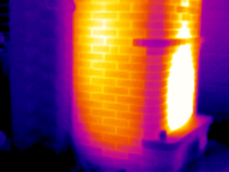 По всей видимости на снимках тепловизором стенка теплонакопительного щитка с пристроенной топкой или металлической печью. Возможно в помещение есть дополнительные источники тепла.