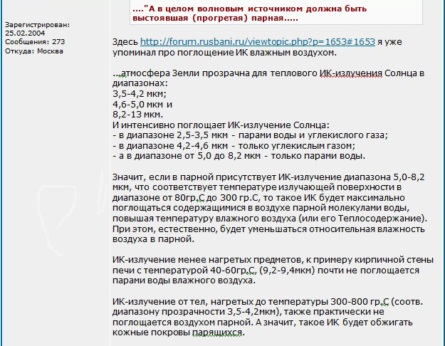 Виктор, вы либо не внимательно читаете мои сообщения, либо сознательно троллите. Мою фразу «массив стен парилки не прогрелся» вы подменили «массивом стен печи», слово «не прогрелся» заменили на слово «перегреть». В итоге все свели к «вредному ИК излучению». Разве где-то в моих постах говорилось о том, что печь должна быть сверх горячей, а значит с вредным ИК излучением?