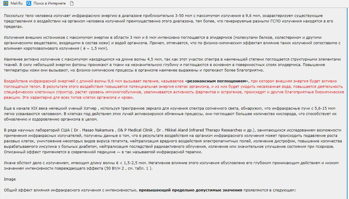 | ...Вредность ИК излучения зависит не только и не сколько от температуры, а от материала, от которого идет это излучение. Как вам известно, длина тепловых волн кирпича несколько отличается от длины волны железа. |
