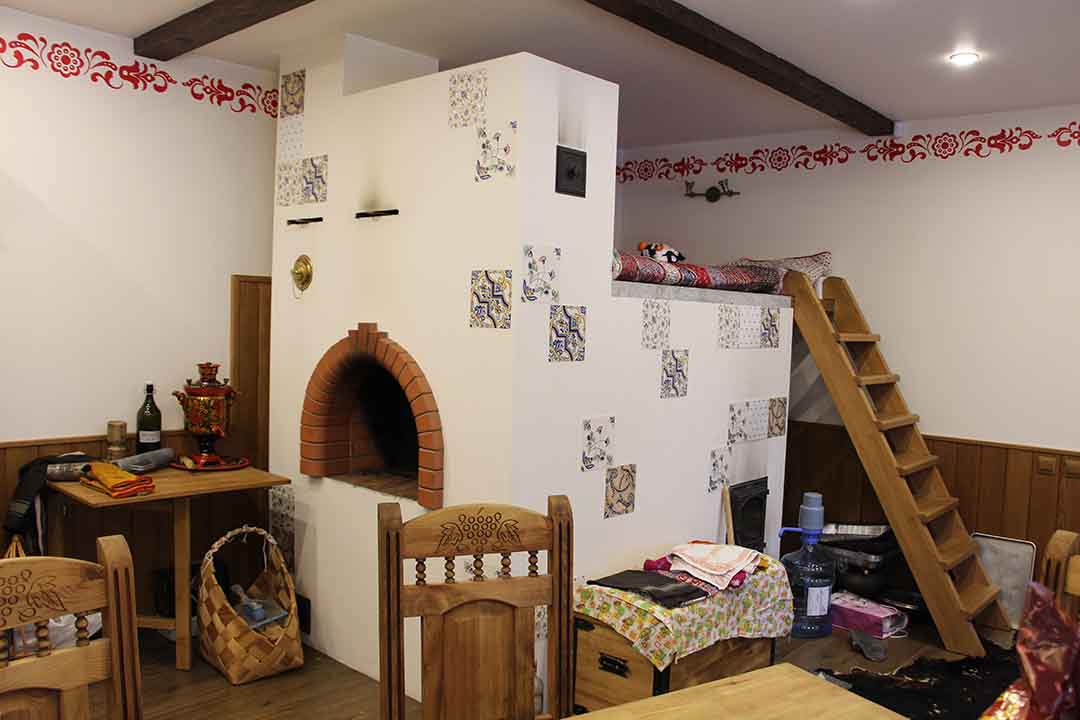 | А мне люстра с рогами и славянские узоры на стене понравились больше. |