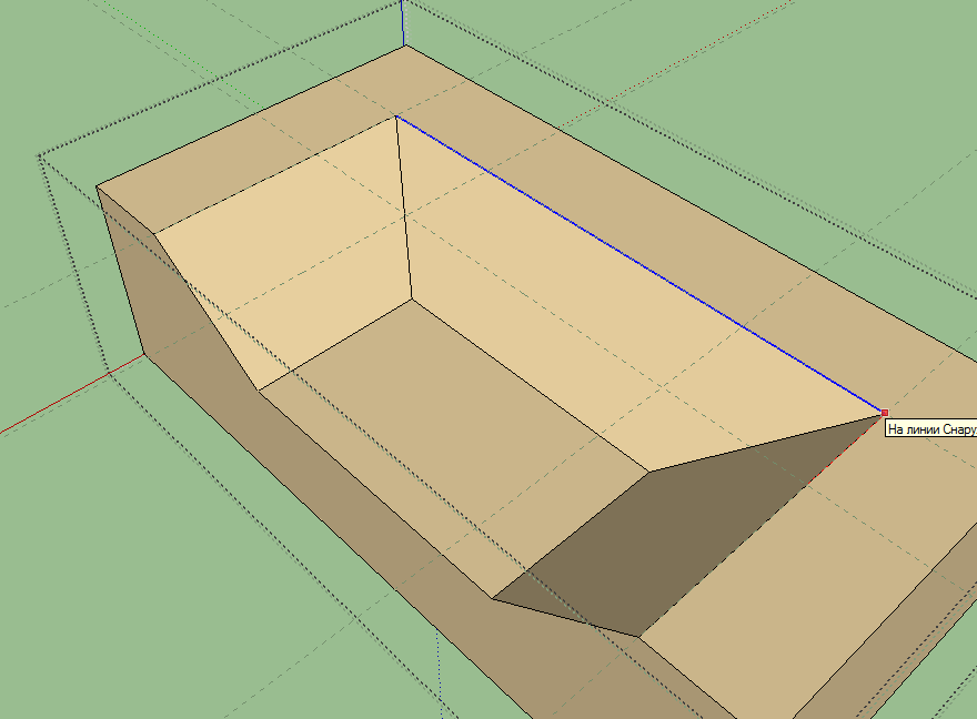Размечаем, в режиме редактировании рисуем прямоугольник, двигаем его вниз "Тяни/толкаем", выделяем боковую грань (синим) и двигаем с помощью "Переместить" вдоль грани. Остальные грани выделяем и двигаем аналогично. https://yadi.sk/d/uvZpmsI-3UYtWD