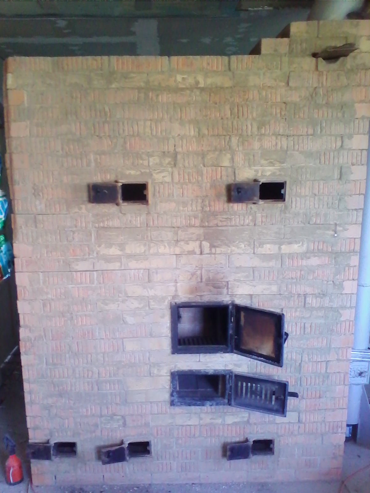 Из-за влаги и не могу перекрыть печку задвижкой чтобы тепло равномерно прогрело печь. Печь футерована в основных местах огнеупорным кирпичом более 200 штук ушло. А теплопушкой как сушить - с открытыми прочистками или с закрытыми ?