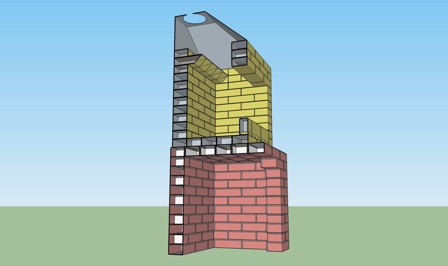 Да делайте как задумано(или по какому нибудь образцу из интернета), только не из шамотного кирпича, а шамот только для футеровки, зуб не нужен тут...