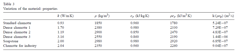 и она же сопоставима с отечественным шамотом - 0.88 кДж/кг*К