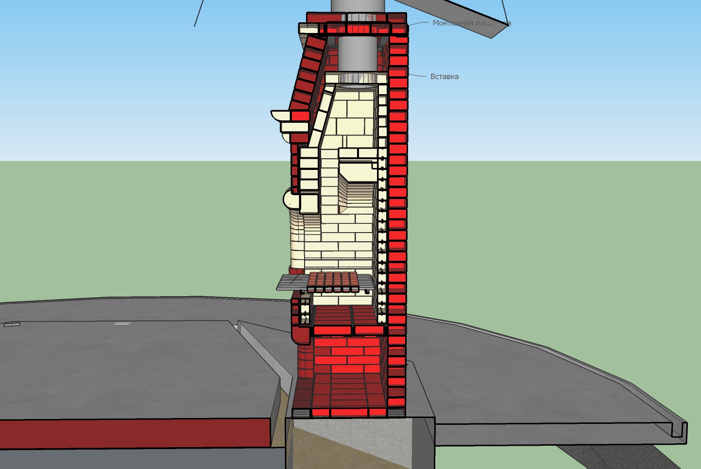 Когда это Вы со мной связывались? Объём для такого мангала как на картинке скетчапа, слишком мало будет по сечению трубы. Там минимум 380 х 380 мм нужно. Иначе будет дымить. Такой мангал если тепла нет его только когда уже тепло будет можно делать. А это минимум только не раньше чем через три месяца. Что будет через три месяца я не знаю. Если вы сами делаете печи, то почему тогда и не сделать вам его?