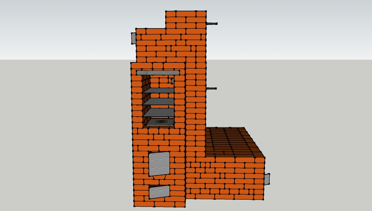 изменил длину лежанки и перекрытия лежанки и корпуса, на один ряд уменьшил высоту опускного канала, и еще кое-чего по мелочам. Правда с шамотом ничего еще не думал, так что в этих рядах полное безобразие.