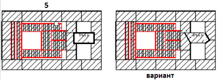 Также, во втором ряду КАК-БУДТО бы нету зазора между шамотным ядром и внешним контуром(в левой части, около передней стенки печи). Нету размера зазора между ядром и внешним контуром там, где он условно показан. Получается, в ряду 4 что какие-то шамотные кирпичи явно укорачиваются по длине. (а вот на сколько, не ясно).