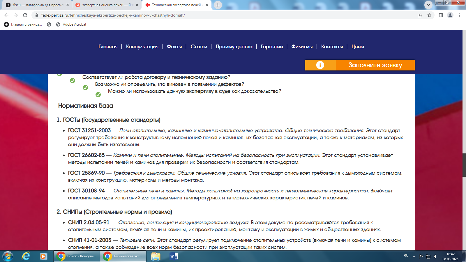Кстати, вот скриншот с сайта одной экспертной компании, заявляющей о возможности проведения "Технической экспертизы печей и каминов в частных домах".