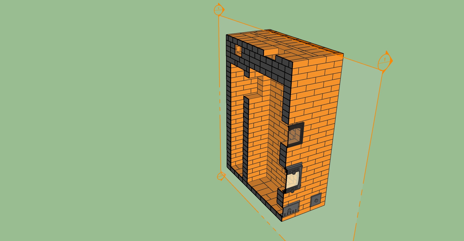 | Шамотное ядро, прочистки и злх не прорисовывал- сори. Теплообменник будет трубчатый по всей задней стенке. |