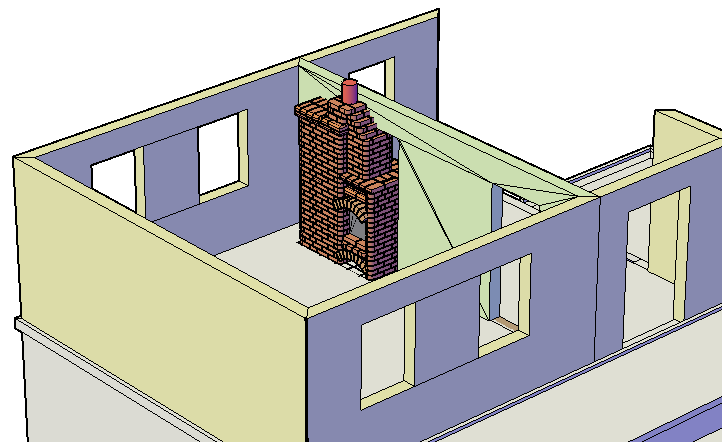 На фотографиях видно, что одно крыло будет опираться на кладку толщиной в 0.5 кирпича, нда... маловато. Посчитав нагрузку на арки портала камина и прикинув величину распорного усилия продолжаем работу дальше безо всяких усилений.