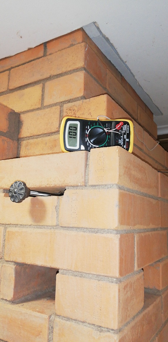 У меня в кирпичную кладку заложена металлическая трубочка , которая выходит в трубный канал , как раз где начинается гильза обложенная кирпичом. В эту трубочку легко вставляется термопара от обычного тестера. Это вполне рабочая конструкция.