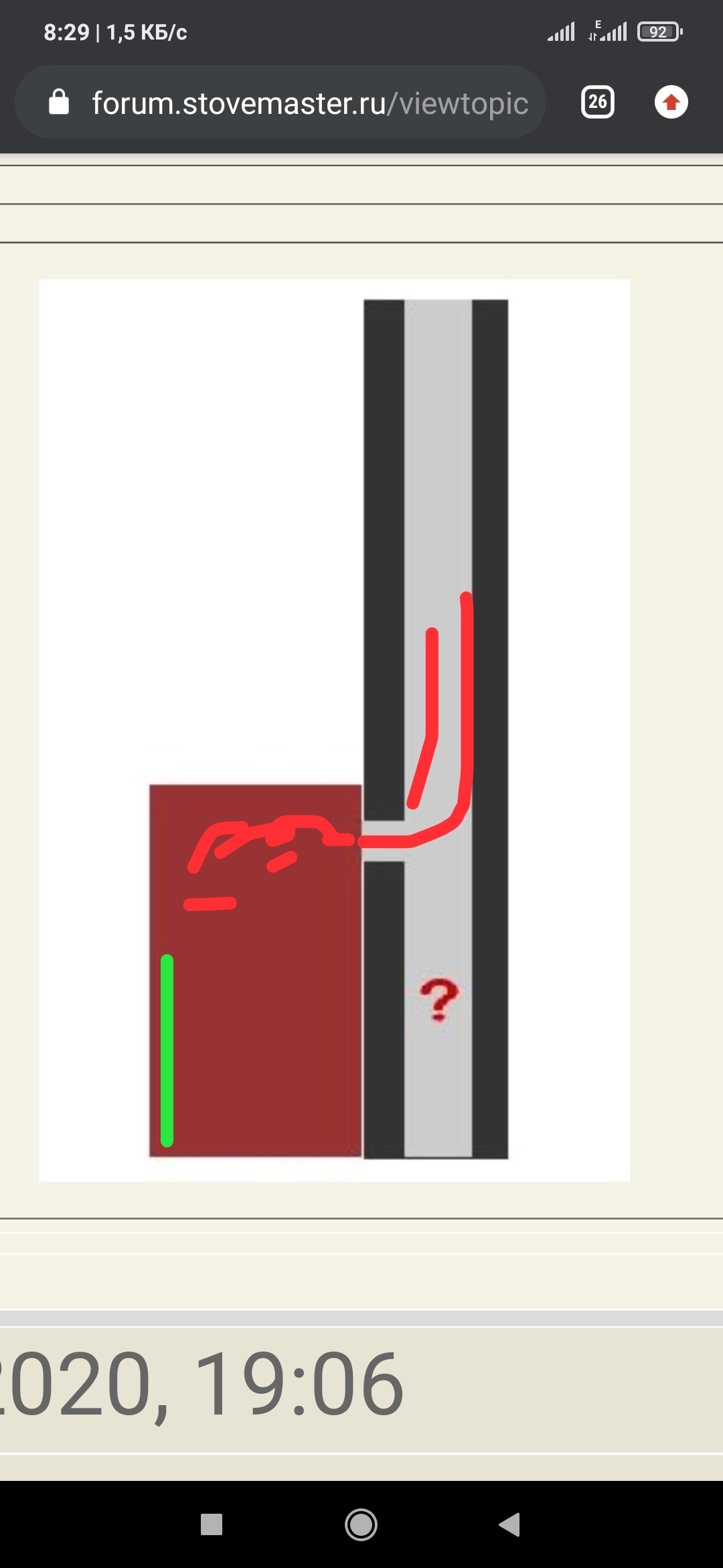 обьем над дверкой,хотя бы половину обьема,от обьема топки,и без углов плавный выход в трубу,хорошо бы под углом 45 градусов.(у Вас в дымосборнике какая то дверка сделана,это загрузочная?)