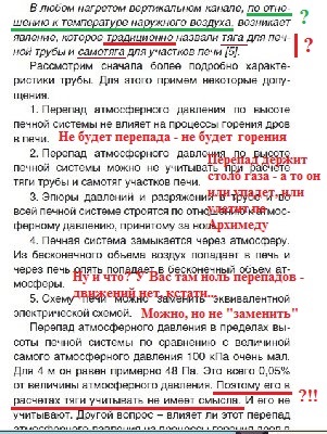 Так же и деление на "активные" и "пассивные" участки. Понятно что ВВ хотел подчеркнуть ,что на активных можно говоить о самотяге , а на пассивных только о потери давления. Но есть участки связанные с генерацией тепла, топка напрмер. Мне кажется что термин "активный" тут больше подходит. И давление развиваемое таким участком определяется не только самотягой участка. А в низком горизонтальном топливнике самотяга его может быть мала, а давление на нем будет развиватться другими физическими явлениями. Об этом Ларин пытается сказать.. только как то сумбурно.