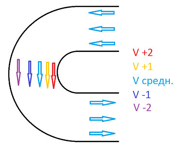 Сопротивление в поворотах, прежде всего, можно снизить делая скругление по малому радиусу, т.е. угол 1, потому что, как уже говорилось выше, здесь и скорость резко возрастает, и температура самая высокая.