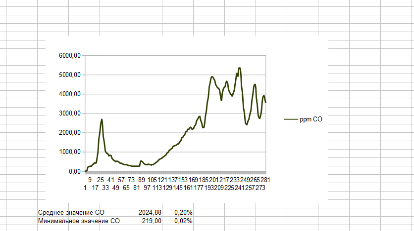 В одном замере у него всего 219ppm(0.02%), зато среднее 2024ppm(0.2%). Различие на порядок и это я еще максимальные не привожу.