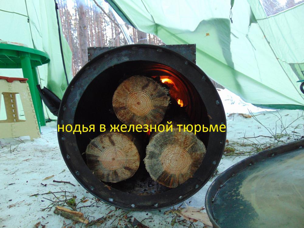 "Я действительно загрузил в длинную горизонталку нодью (пусть и не гигантскую) и действительно заставил её гореть в печке задом наперёд ПОСТЕПЕННО. Имеется в виду, что пламя пожирало брёвна от заднего торца к переднему торцу точно так же, как оно пожирает свечу - равномерно, фронтально и последовательно."