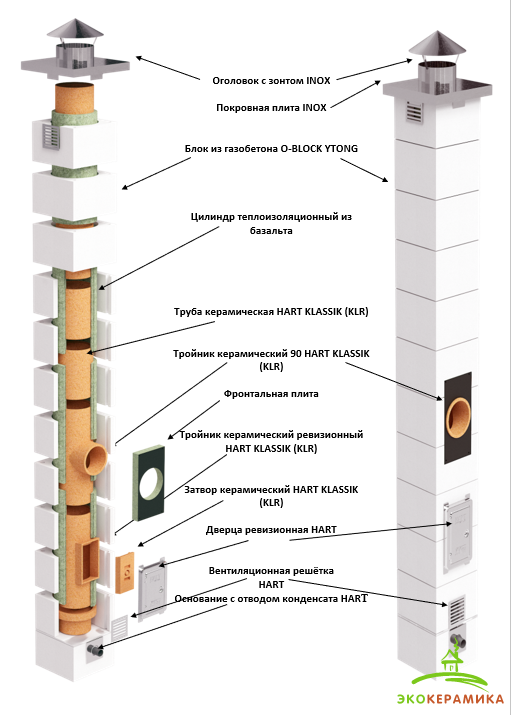 Ставить газобетонный дымоход в помещениях нет никакого смысла. Он ценен именно на холодных участках. Это может быть наружный дымоход или выше чердака, чтобы исключить образование конденсата и накопление сажи в канале.