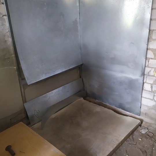 Металлический уголок к огню не стоит ставить. Попробуйте обойтись без него. |