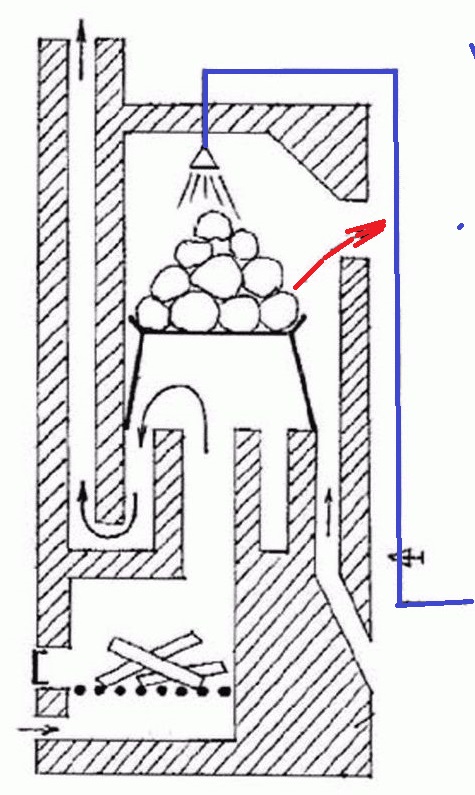 В каменке Колчина пар может смешаться с воздухом (в объеме каменки и топки) и выпущен из топочной дверки.