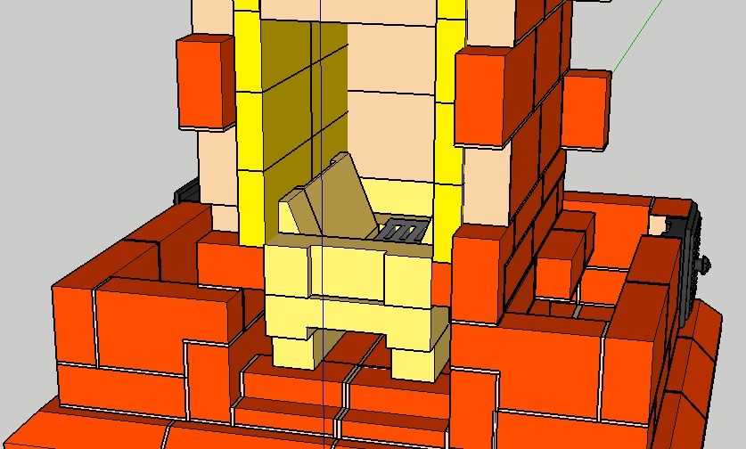4) Согласен, что задвижку прямого хода лучше поставить по центру. У меня поворотная задвижка и я плохо представляю как ее установить на шамотный кирпич. Выше тепловой зазор и второй ярус.