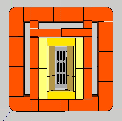 Ширина каналов в моей схеме 70 мм. И площади их достаточно. Что касается уголка, то а мой взгляд луше обойтись без него. Металл в печи как несущий элемент .. это плохая идея. В виде стяжки , когда он не работает на изгиб, это гораздо лучше.