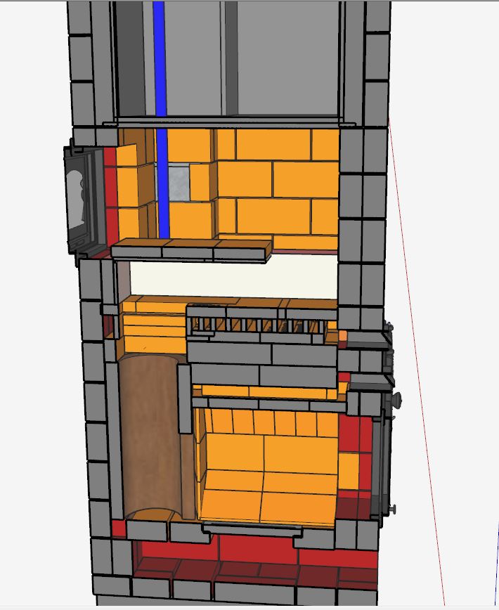 П.С. и ещё. Вы постоянно рисуете лабиринт сечением 30х40мм или около того. Тут явно такой же. Из каких соображений выбрано это сечение? Скорость движения ВВ, конвективная передача тепла от шамота свода к потоку, толщина прогреваемой части потока, турбулентность и длина пути перемешивыания .. какие?