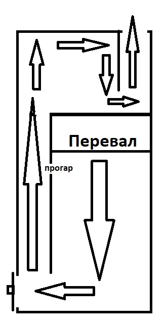 Даю , так. Если тяга трубы мала, то встречная самотяга горячего опускного выровняет давление в канале и он будет греться равномерно. При большой тяге трубы, "пылесос " в подвертке втащит в себя поток , так как Вы показали на рисунке. Но Вы сперва добейтесь такой тяги с холодной печи без ЗРХ. Поэтому поклонники такой схемы вынуждены колхозить прогар или ставить ЗРХ, второе конечно предпочтительнее.