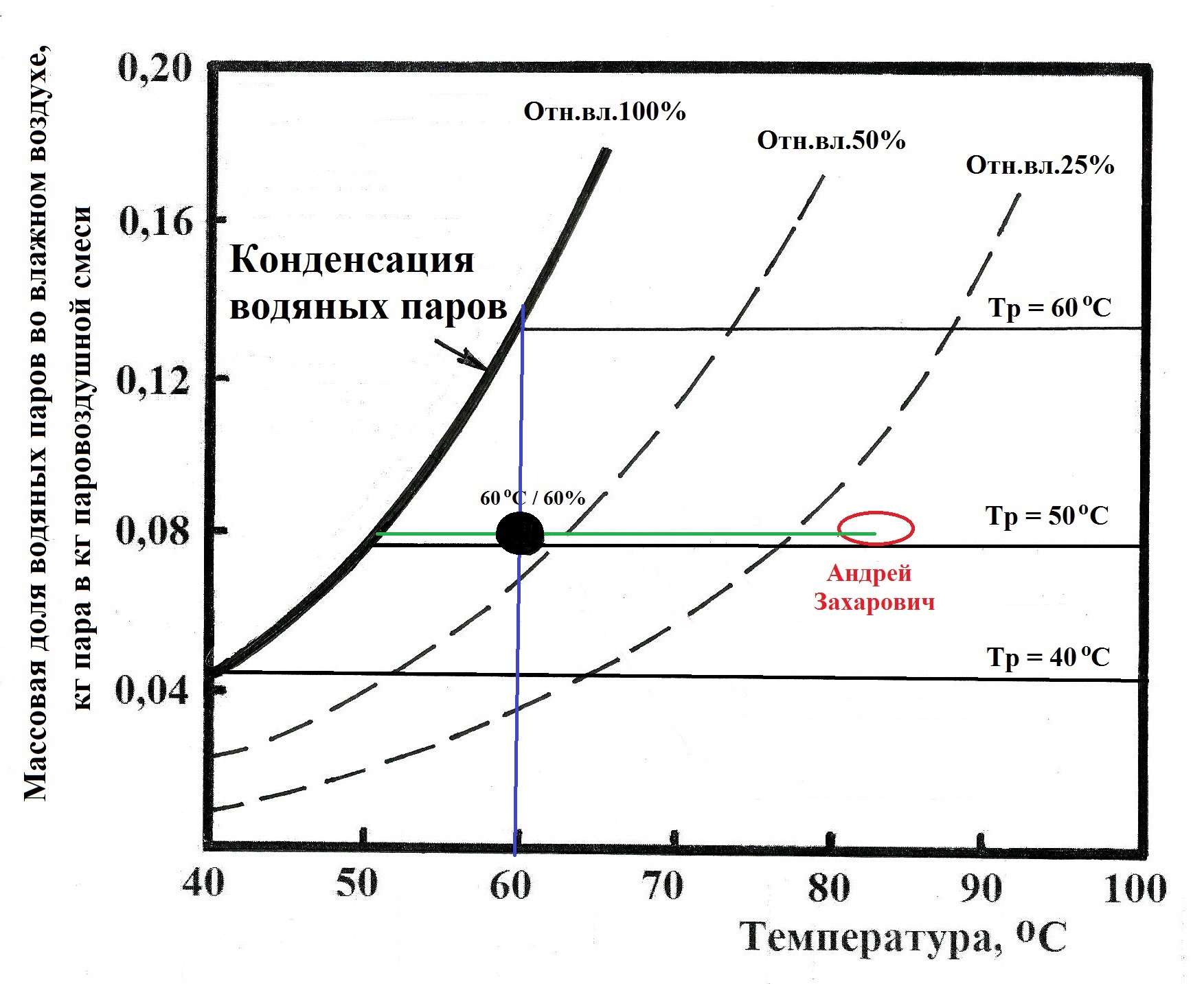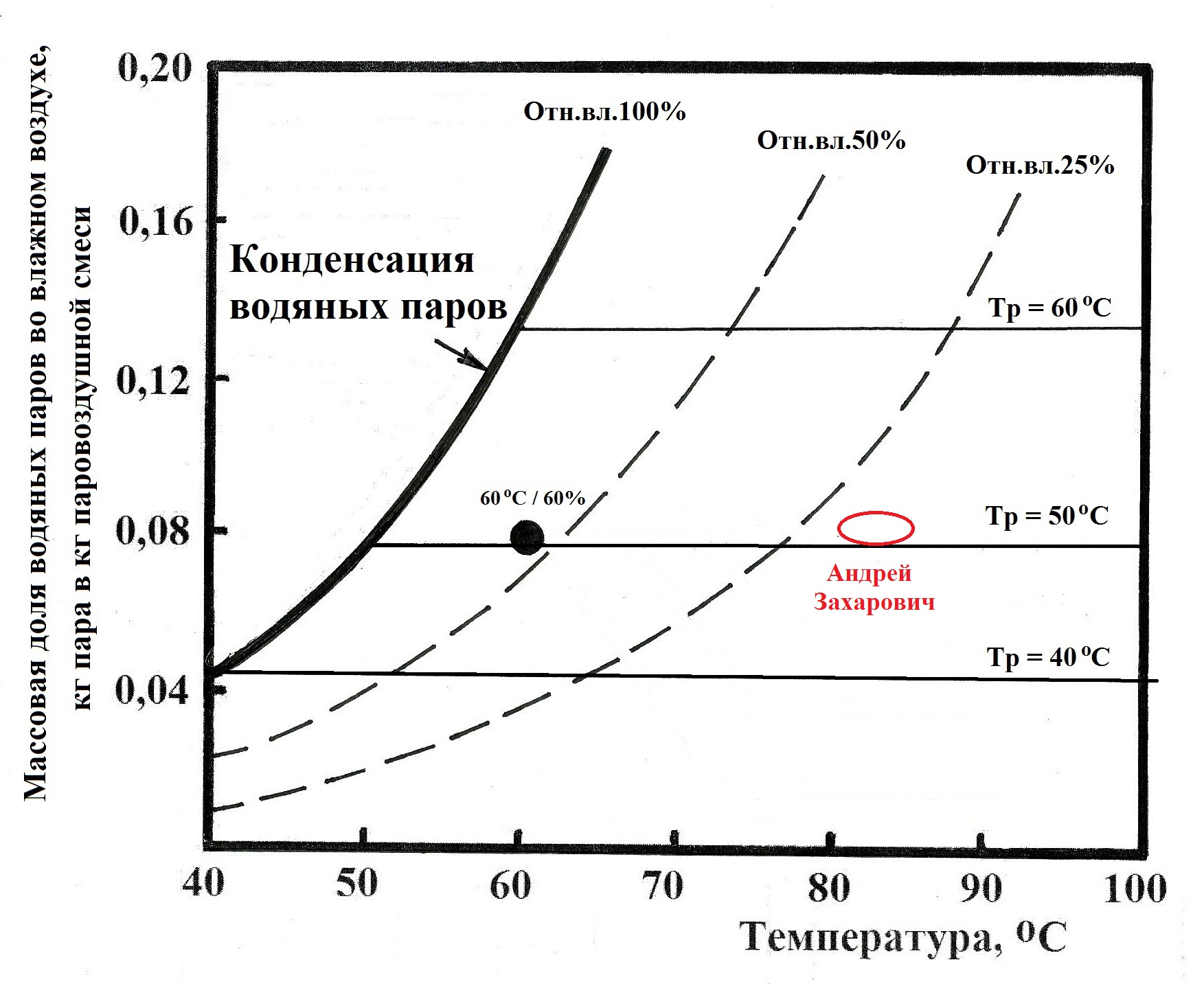Так, режим 60/60 можно получить даже и при смешении пара 60 с воздухом 60 (дуть феном 60 на мокрые стены 60). Или смешением Вашего ЛП с паром у кожи 50.