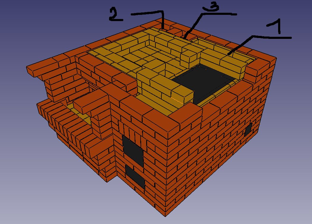 Проектирую печку во Freecad. Три в одном. Русская с подтопком и камином. За основу взята печка Алексея Емшанова. В отличие от оригинала, при топке подтопка по зимнему, дымовые газы пройдут под подом русской печи и вернутся назад к этой же стенке, но к дальней стороне. Два канала разделены между собой, но нельзя прижать кирпич внешнего контура ядру к топки русской печи. Поэтому здесь будет щель. Вопрос чем заделать щель. Можно ли использовать базальтовый картон? Или это не критично для тяги?