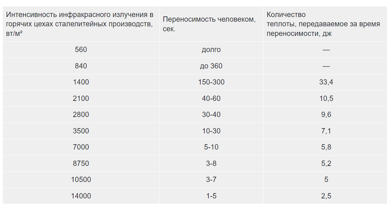 Но время переносимости имеет в виду продолжительность воздействия (экспозицию, по-Вашему) до появления невыносимой боли, а не поражения кожи, на что обращает внимание Демин. Переносимость определяется тепловым потоком, но фактически, наверно, температурой кожи. Причем, при больших тепловых потоках температура кожи так быстро растет, что тепло не успевает "войти" https://health.totalarch.com/bathstructure/1