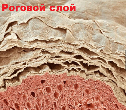 Если излишне соскоблить роговой слой, то влага из эпидермиса испаряется излишне, эпитермис сушится, раздражен (кожа сухая). Чтобы эпидермис увлажнить, надо остатки рогового слоя замаслить, чтобы не испарял. Нормальная скорость испарения с эпидермиса - это естественная транспирация 0,5 литра в сутки.